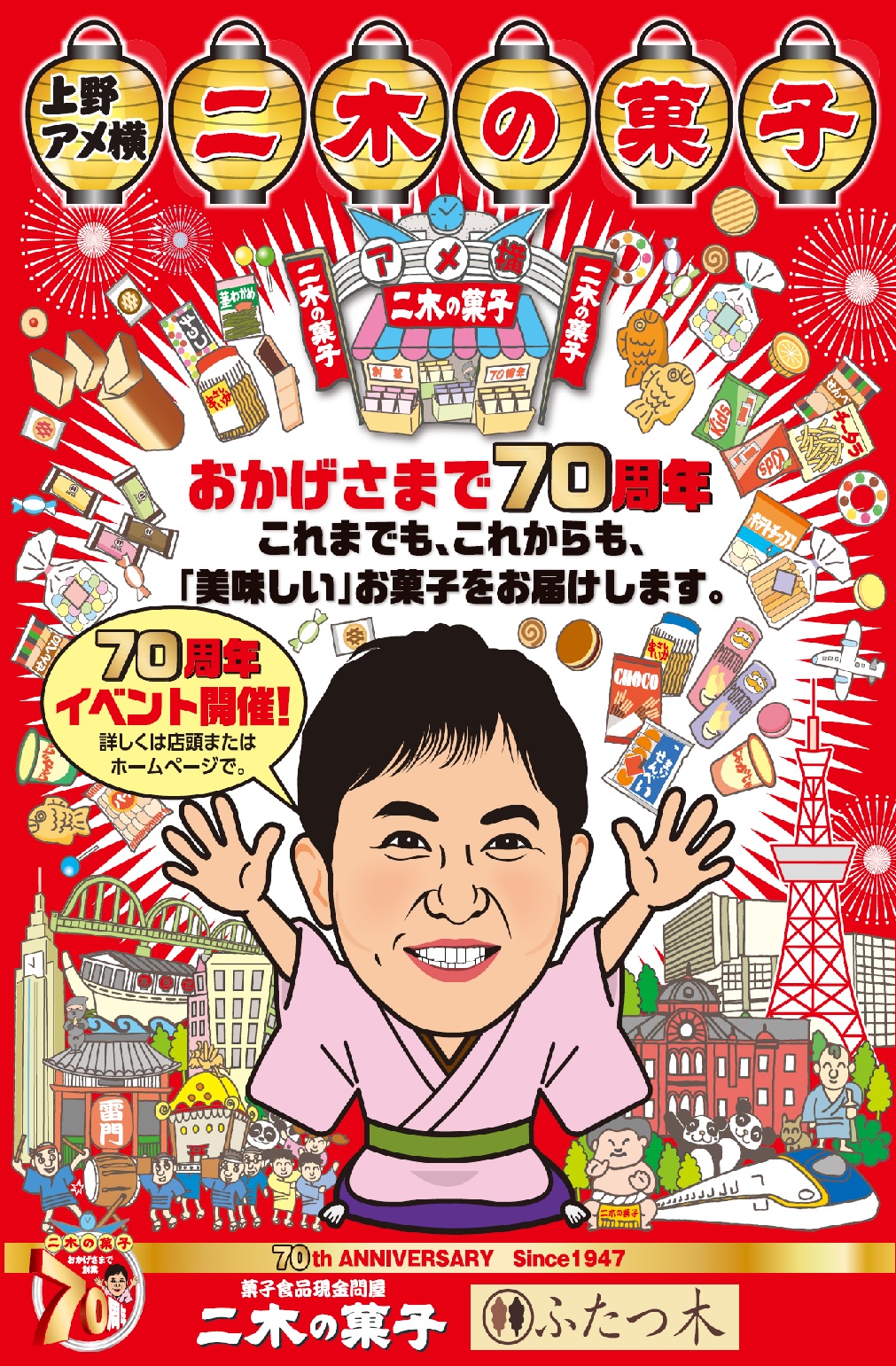 「二木の菓子」はいろいろな種類のお菓子を豊富に扱っています。なじみのある駄菓子や煎餅、豆菓子、飴、輸入菓子からお酒のおつまみにぴったりな珍味まで幅広く揃えています。 東京善意銀行支援セール 衣料品・日用品・雑貨などを販売し、売上金の一部を寄付するものです。 寄付金は(社福)東京都社会福祉協議会 東京善意銀行を通じて、都内の社会福祉施設等で、車いすや自動車、文房具、パソコン等必要とする物品の購入費用等として役立てられます。 ※最終日は16時30分で終了いたします。