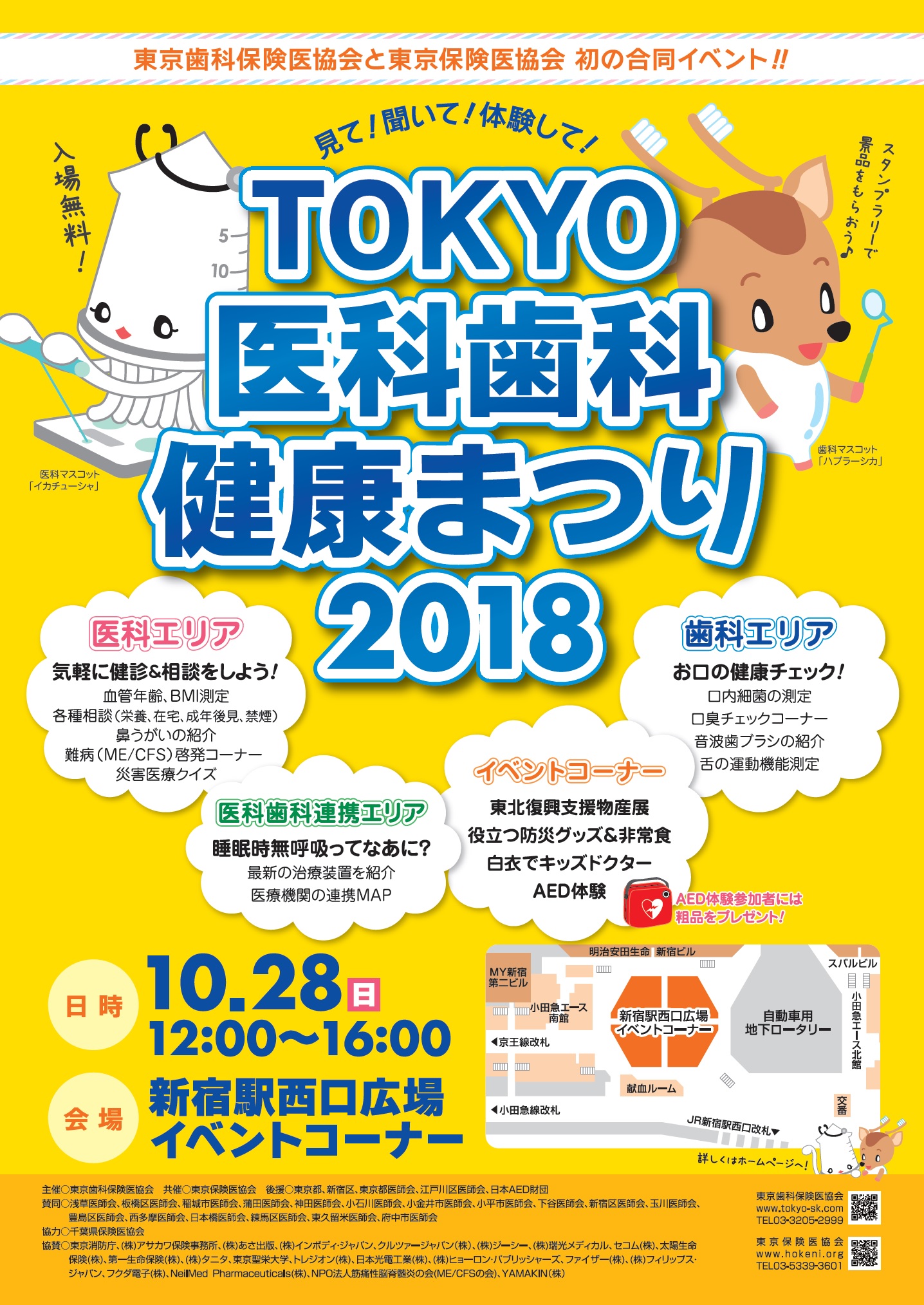 医師、歯科医師が血圧検査やBMI測定や口腔内検査を通し健康の大切さを伝えたり地震災害時等の緊急時対応を啓発します。