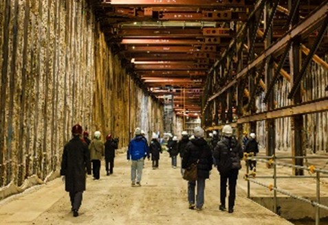 こちらは先ほど見学したシールドマシンを使用する工法とは異なり、開削工法という方法で地上から掘り下げて工事が進められています。