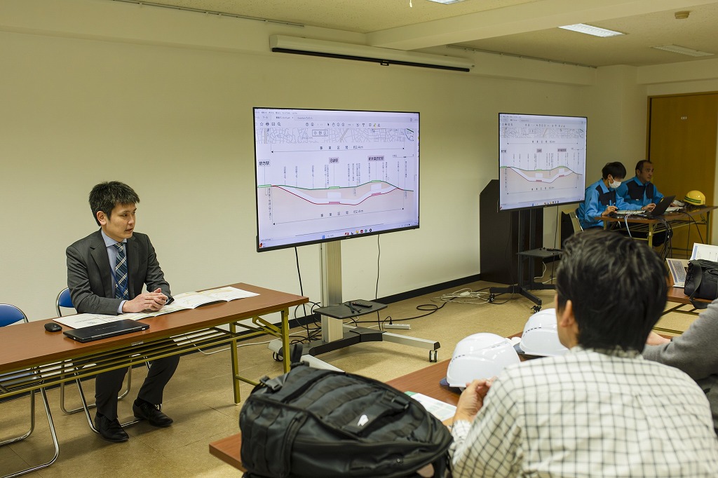 主催者からの挨拶の後、東京都建設局及び西武鉄道株式会社の担当者より、連続立体交差事業及び工事についての概要説明がありました。