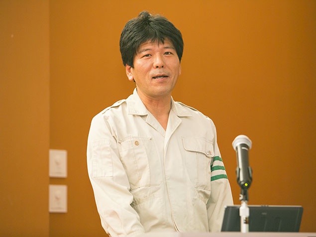 参加者の皆様には、見学する標識工場に現地集合していただきました。受付を済ませ、講習室で道路標識について説明を受けます。